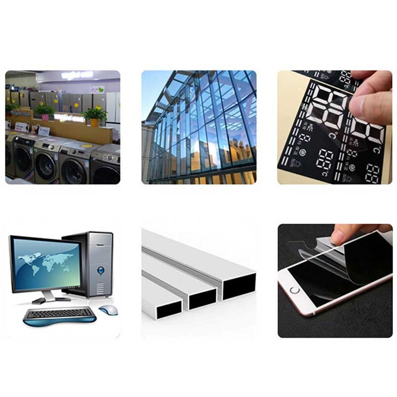 Protecting LCD, OLED, and touch screen displays, Surface protection for glass, plastic, and metal panels, Automotive interior and exterior parts protection, Protection during fabrication, transport, or installation of sensitive components, Temporary surface masking in electronics and home appliances.